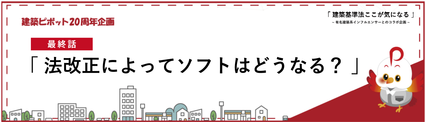 今回の20周年企画では、建築系インフルエンサー「そぞろ氏」と、現状の建築基準法の問題点や、今回の法改正が建築業界やソフトウェアに与える影響について対談する機会を持ちました。 実際にソフトウェアの設計や審査に携わる立場だからこそ、制度の課題や現場での運用とのギャップに気づくことが多く、具体的な意見が交わされました。 建築ピボットでは、今後も最新の業界動向や実務に役立つ情報を積極的に発信し、設計・計算業務の効率化をサポートしてまいります。引き続き、建築ピボットの取り組みにご注目ください!