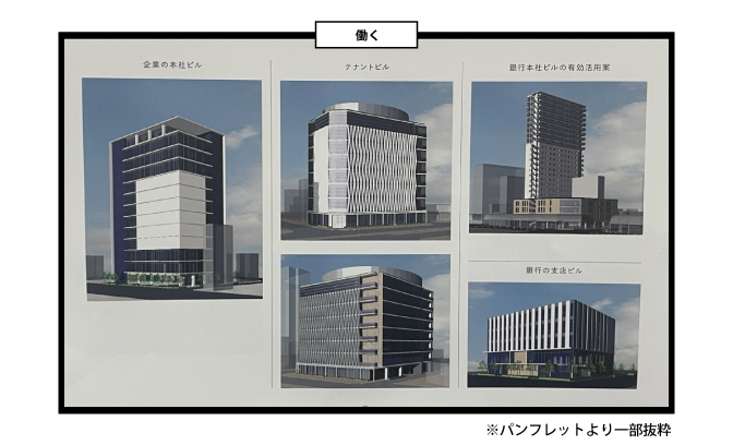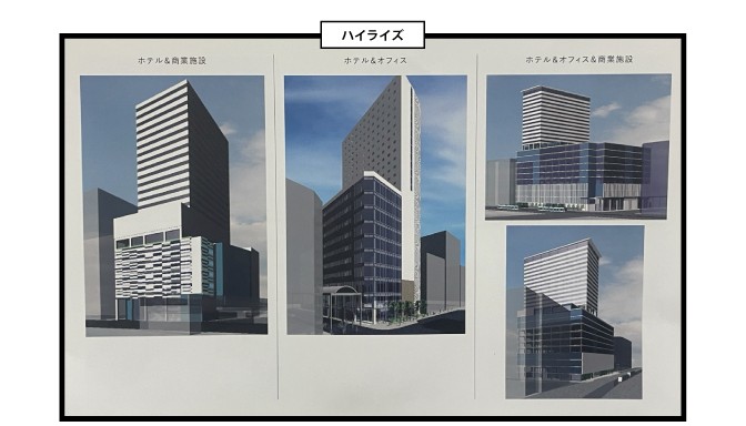同じ土地でも「オフィスビルなら」「マンションなら」「ホテルなら」と異なる提案をすることで、クライアントの選択肢を広げます。