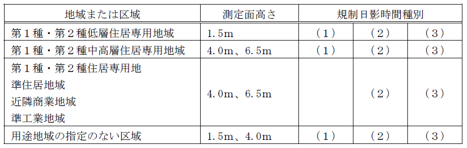 ※規制日影時間種別については表1)を参照