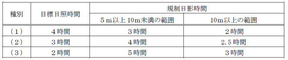 表1)規制日影時間