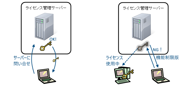 使用期限が設定されているライセンス情報をパソコン単位で取得や返却を行う認証方法です。